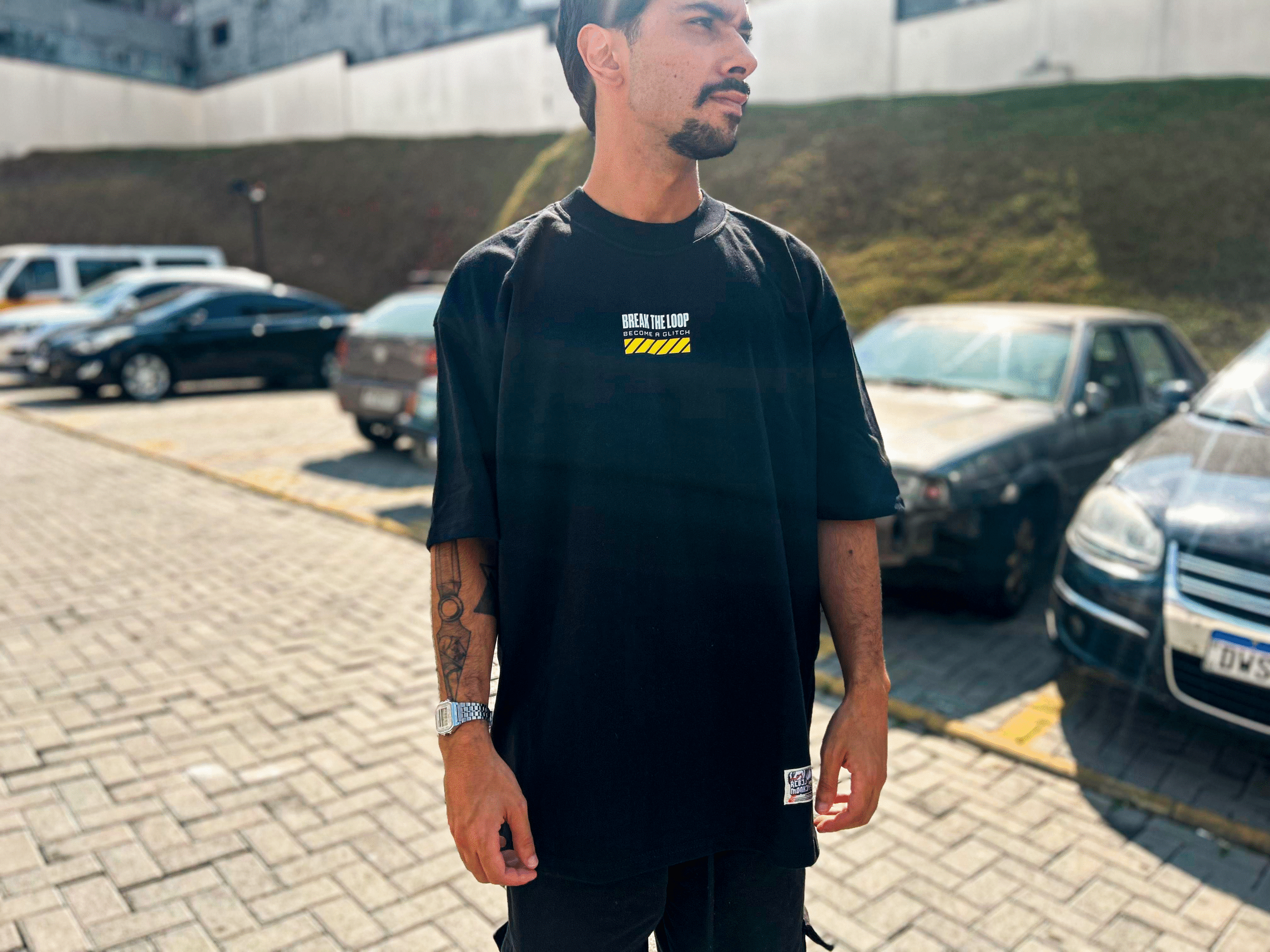 A Camiseta Oversized BREAK THE LOOP Preta (Versão AMARELA) é minimalista na aparência, mas carregada de significado. Sua estampa discreta no peito traz a frase “BREAK THE LOOP – BECOME A GLITCH” em AMARELO vibrante, transmitindo a ideia de romper padrões e desafiar o sistema.