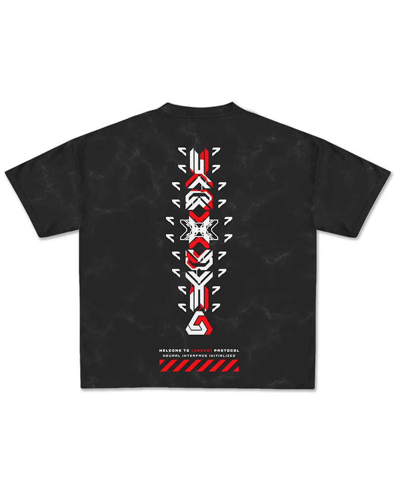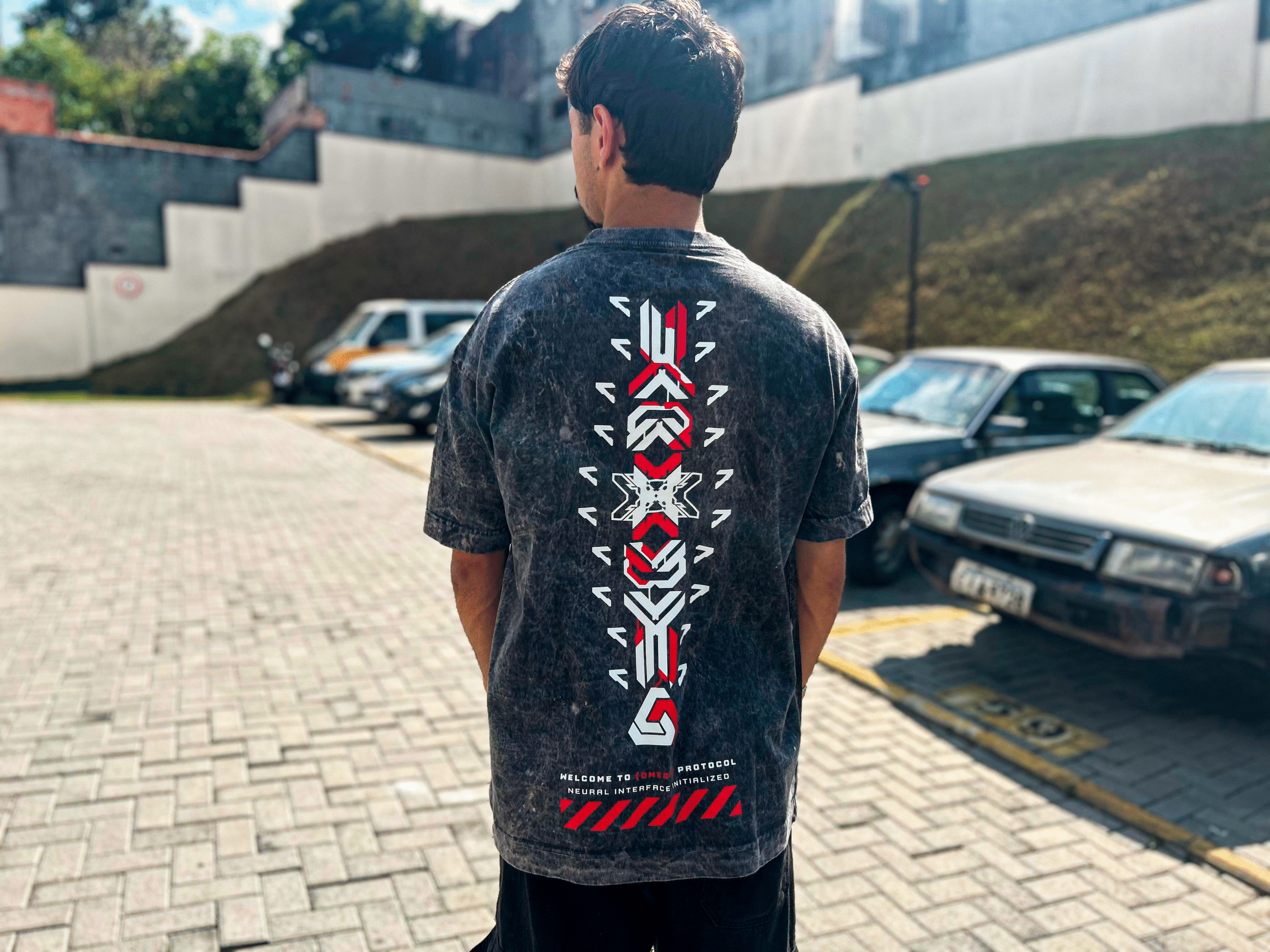 A Camiseta Oversized BURN – OMEGA – Preto Mármore é a fusão entre estética futurista e autenticidade urbana. Sua estampa traz uma coluna estilizada em visual cyberpunk, remetendo a um aprimoramento tecnológico. A frase “welcome to (omega) protocol – Neural Interface initialized” adiciona uma narrativa imersiva, como se fosse a ativação de um sistema avançado.